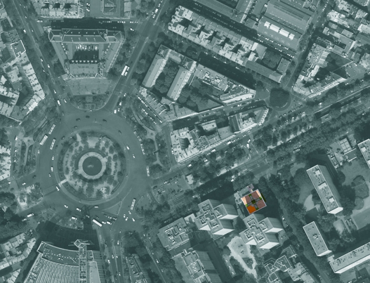Réinventer Paris c'est ici très concrètement redonner un avenir à un édifice public délaissé -en l'occurrence l'ancien Conservatoire de musique du XIII° arrondissement- afin d'accompagner une évolution sociétale de fond, celle du développement de la médecine dite "ambulatoire" -c'est à dire collective mais sans hospitalisation- en ville. Cœur de l'offre programmatique proposée, un centre médical est implanté à l'étage principal de l'édifice sur près de 300 m² regroupant neuf salles de consultations destinées à des médecins spécialistes (cardiologie, pneumologie, ...) et tous les espaces nécessaires à leur fonctionnement. Il est accompagné à Rez-de-chaussée et au sous-sol par un Centre associatif conçu pour accueillir des associations liées à l'univers médical ou para-municipales et aux étages supérieurs par 12 logements pour des chercheurs. L'édifice aux quatre façades rayonnantes s'organise autour d'une nouvelle cour centrale apportant lumière, végétation et ventilation naturelle. Il est surmonté de deux niveaux de logements aux façades habillées de bardage bois à claire-voie. Celles-ci se retournent en toiture pour former un couronnement en étoile à l'angle du Boulevard Vincent Auriol et introduire ainsi une dissonance joyeuse dans l'univers "orthonormé" des hautes tours de logements implantées en arrière-plan. A portée de vue de la Place d'Italie, l'édifice se définit ainsi comme une petite "cité médicale" sise au cœur de la Cité à mi-chemin entre le cabinet privé et l'hôpital public, contribuant ainsi à "réinventer" la place de la médecine dans la ville.