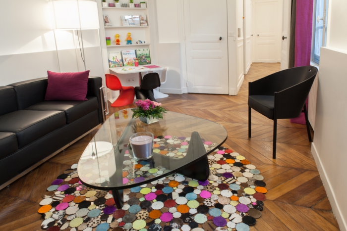 Etude pour l'aménagement d'un cabinet dentaire dans un appartement de 90 m² en Rez-de-Chaussée à Paris XVII° (décoration : Sandra Kieffer - Cabinet Interlude).