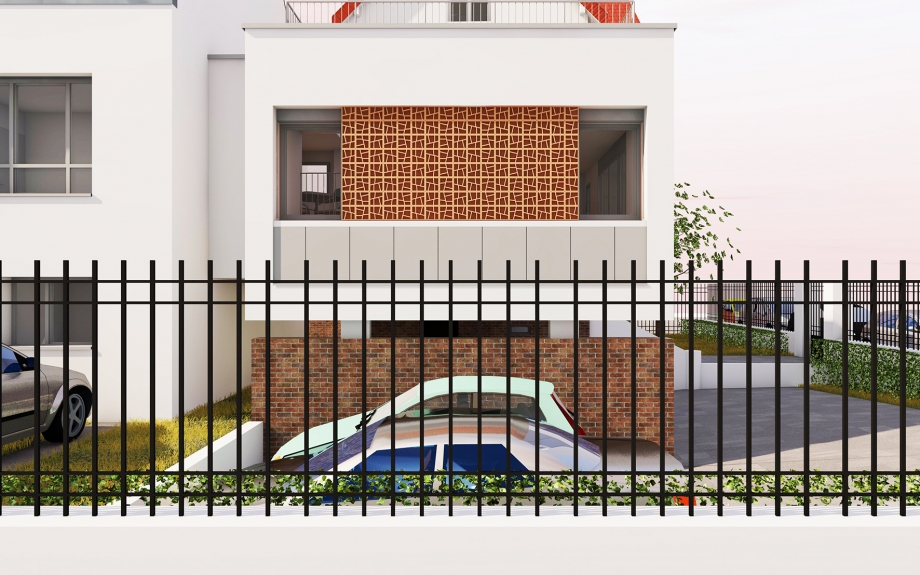 Propriétaire à Aulnay-sous-Bois d'un beau pavillon de trois étages subdivisé en 3 appartements, le client souhaitait densifier sa parcelle en y édifiant un programme locatif supplémentaire. Nous avons proposé d'implanter deux nouvelles maisons de 2 niveaux au-dessus du rez-de-chaussée sur l'allée bordant l'est de la parcelle, l'une d'entre elle étant prolongée par un volume d'angle la reliant le pavillon existant. Non construit au rez-de-chaussée, celui-ci permet le maintien d'une aire de stationnement protégée pour les trois logements existants en même temps qu'il proposer une articulation entre l'ancien et le nouvel édifice. L'évolution du réglement consécutive du passage du PLU au PLUI nous a conduit a supprimer le volume d'angle.