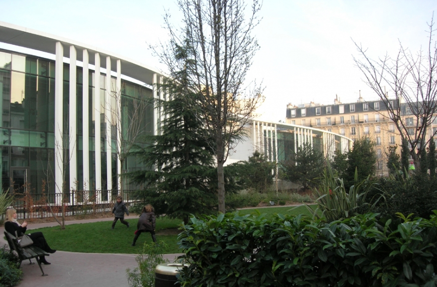 Le concours pour la réhabilitation et l'extension de la piscine Marrane à Levallois-Perret offrait une très belle problématique : comment concevoir un équipement à la fois sportif, de détente et de soins du corps exposé à la vue d'un grand jardin public dans l'environnement parfaitement ordonnancé d'un centre-ville ? Nous avons fait le choix de métisser les deux registres : l'unité et la solennité d'une colonnade verticale (faisant office de brise-soleils) pour qualifier l'image publique couplée à la sensualité d'une longue ondulation sinuant telle une courbe de Matisse face au jardin pour évoquer l'aspect sportif et ludique du programme. La césure inscrite dans l'axe du grand bassin fait communiquer la piscine publique et la piscine scolaire mais également l'ntérieur et l'extérieur par l'intermédiaire d'un plafond lumineux qui se prolonge en une grande terrasse plantée dominant le jardin public.